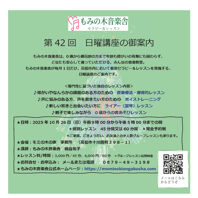 ★もみの木音楽舎公式ホームページ:https://mominokiongakusha.com